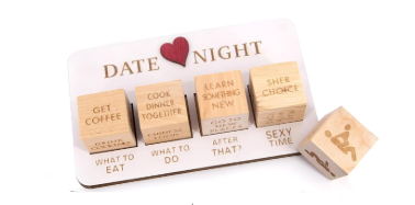 Stell dir vor: Ein sanfter Kuss, ein verliebter Blick, das Knistern der Vorfreude... und vier Würfel, die das Schicksal eurer gemeinsamen Nacht bestimmen. Erst asiatisch Essen oder mexikanisch, Film schauen oder spatzieren gehen, Kaffee oder Cocktail, ...